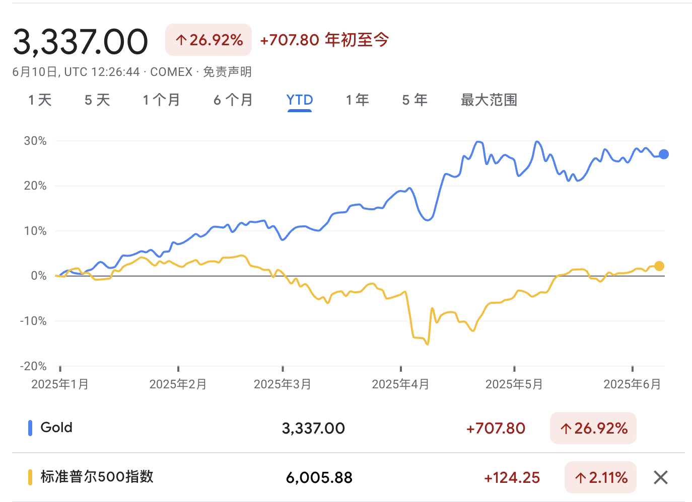 值得注意的是,今年2月18日,标普500指数和黄金期货曾同时创下各自的历史高点——指数收于6129.58点,黄金收于2949美元。